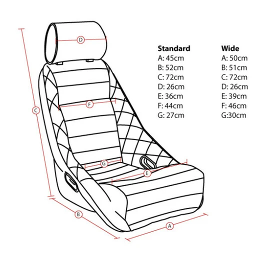 The dimensions of the seat can be found above in the product visuals. Available in standard size (waist up to 81 cm) or large (waist over 81 cm).