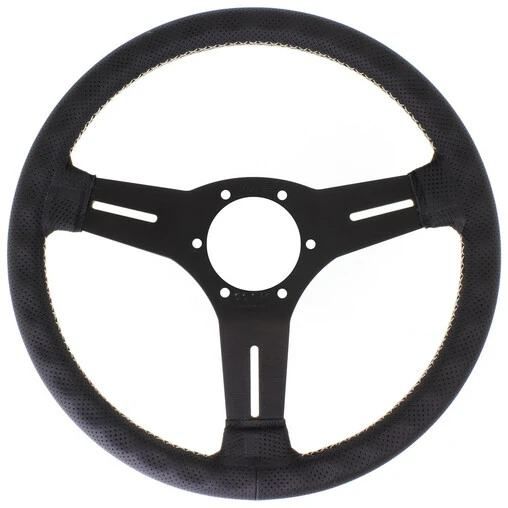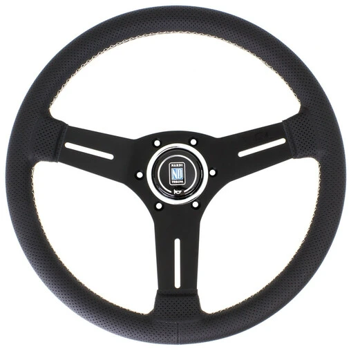 Nardi Competition Steering Wheel, Black Perforated Leather, Black Spokes, Grey Stitching, 25 mm Dish, Ø33 cm Specifications