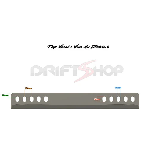 This steel side mount kit, manufactured by DriftShop is compatible with all bucket seats with side fixings. It offers seat positioning adjustment via stepped holes (tilt up to 21 °). Overall length is 36 cm, with a thickness of 3 mm.