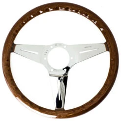 Nardi Deep Corn Steering Wheel, Wood, Chrome Spokes, 75 Mm Dish, Ø35 Cm