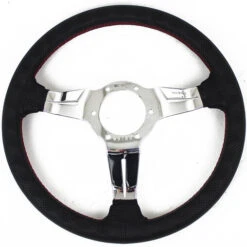 Nardi Deep Corn Steering Wheel, Suede, Black Spokes, Red Stitching, 75 Mm Dish, Ø35 Cm